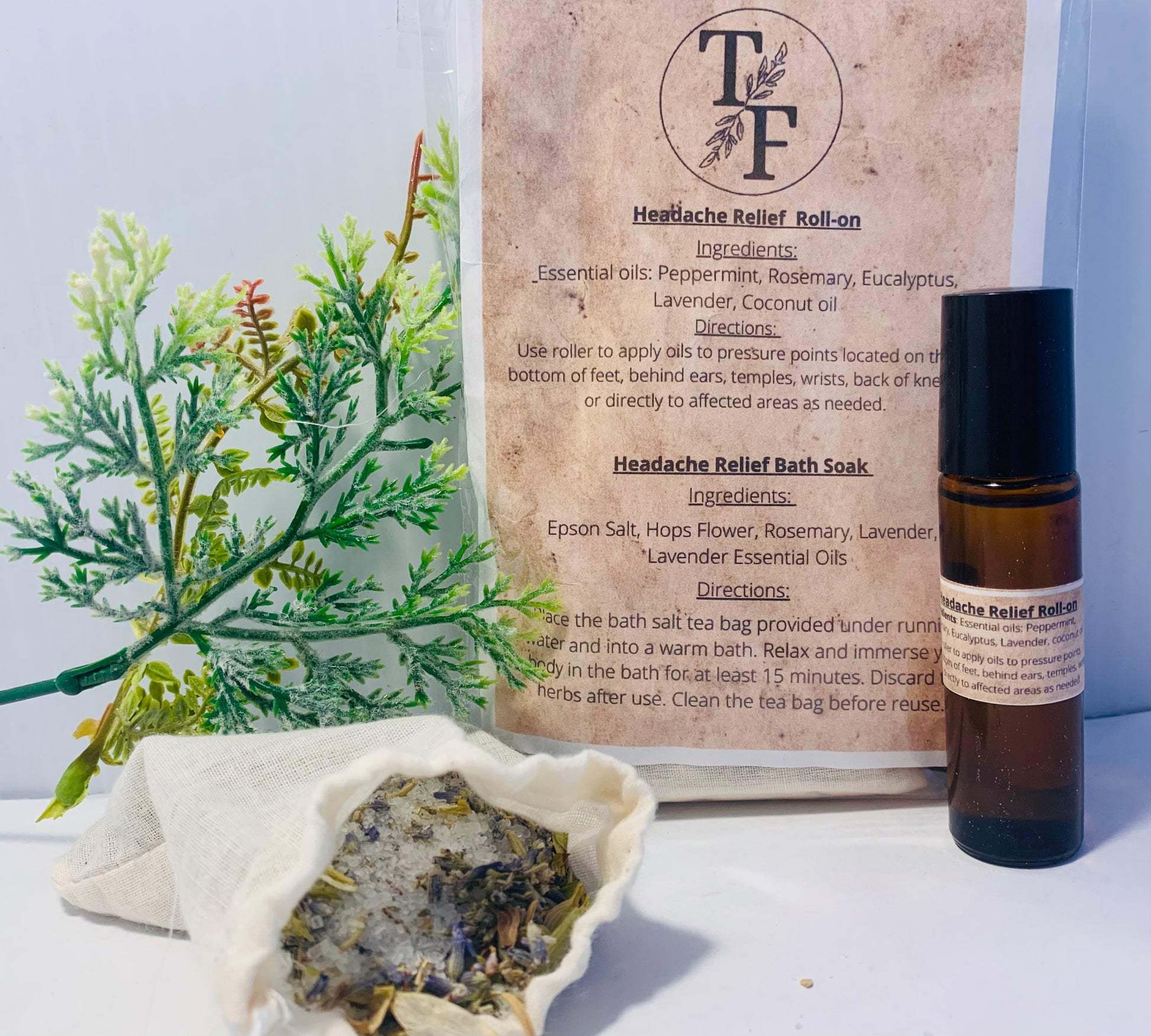 This headache bath soak contains selected aromatic bath salts, created to help alleviate your headache pain. The ingredients of this aromatic blend include: Epson Salt, Hops Flower, Rosemary Eucalyptus, Lavender and Lavender Essential Oil.